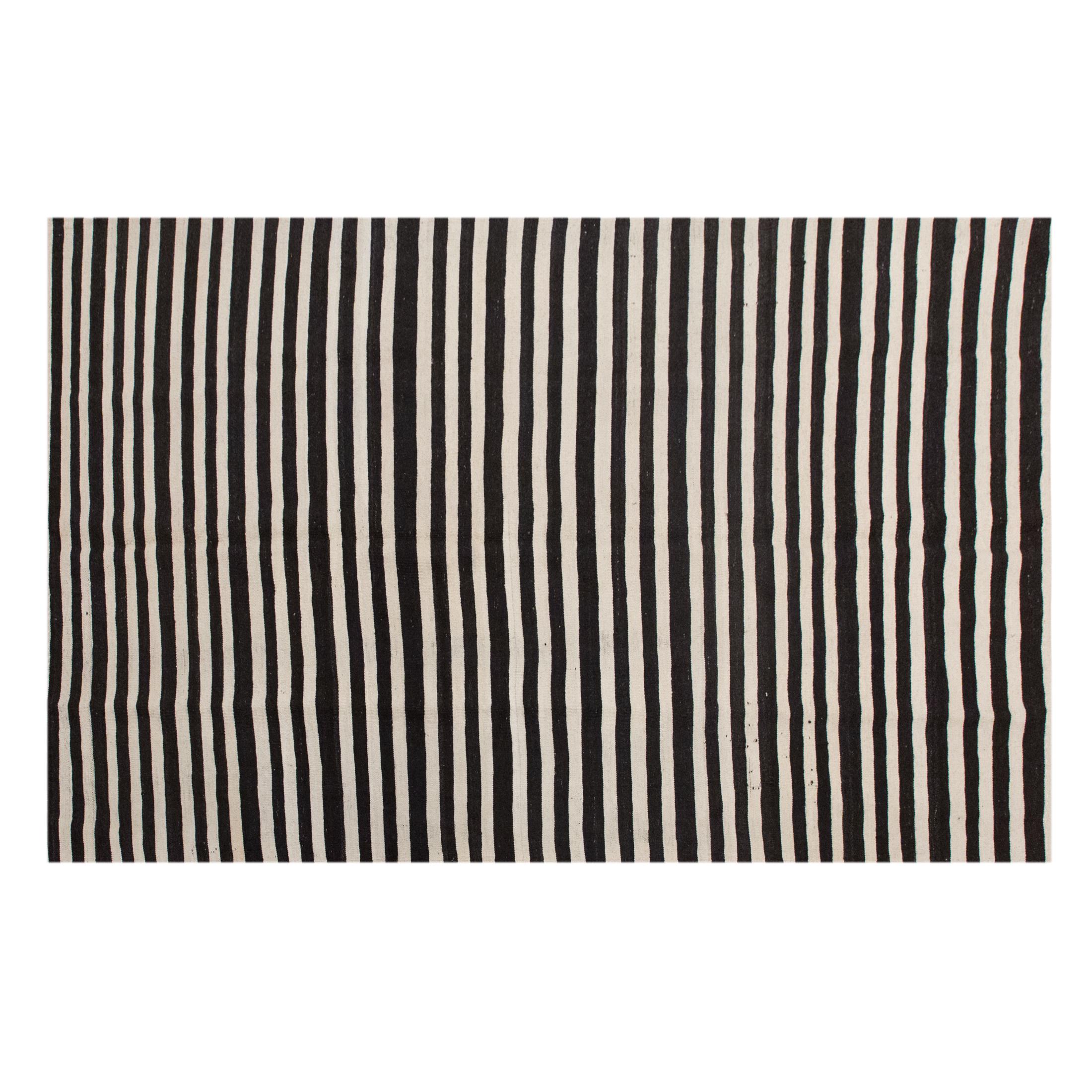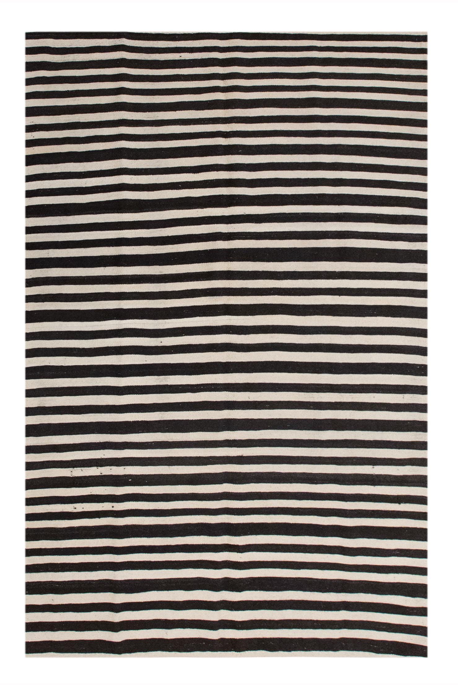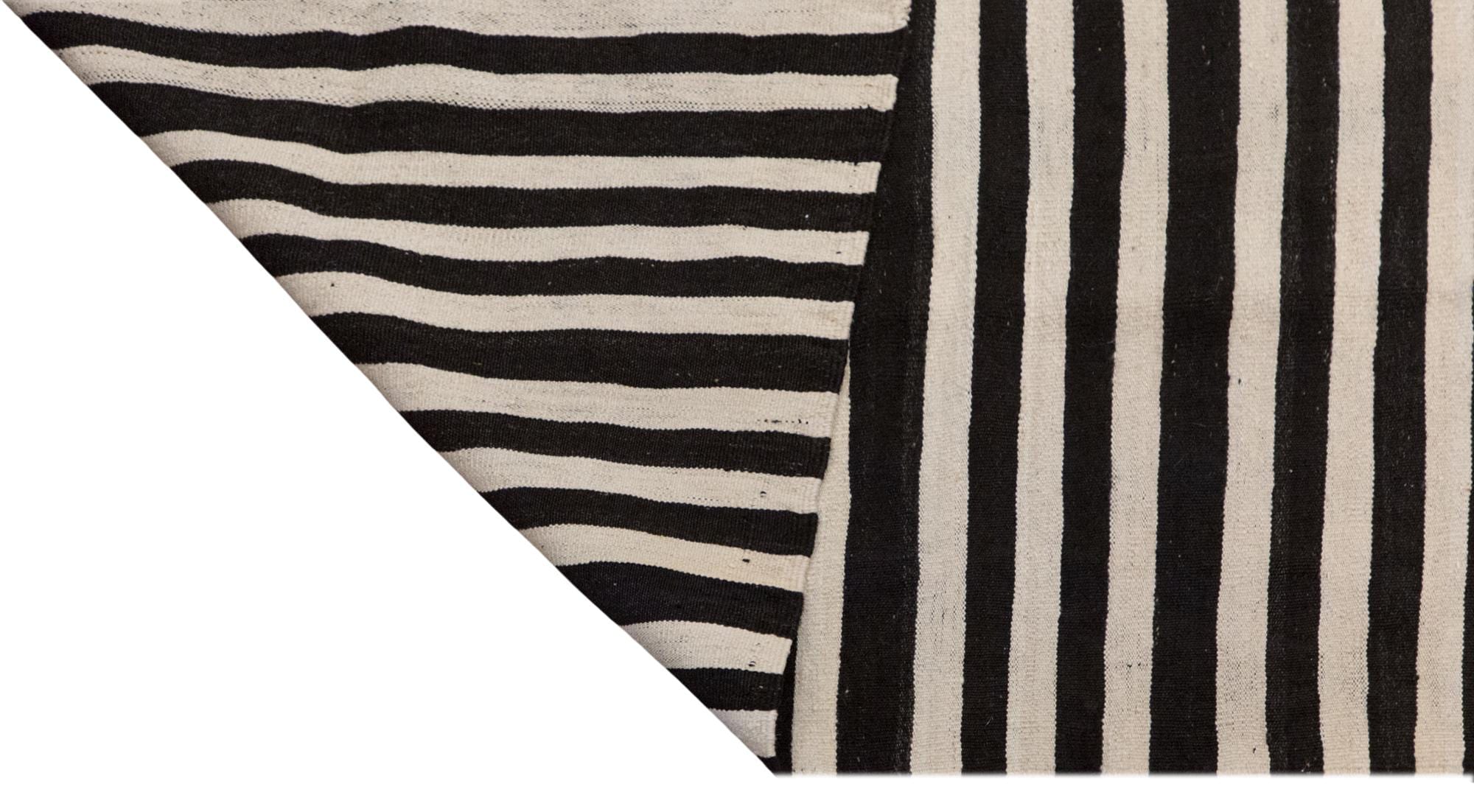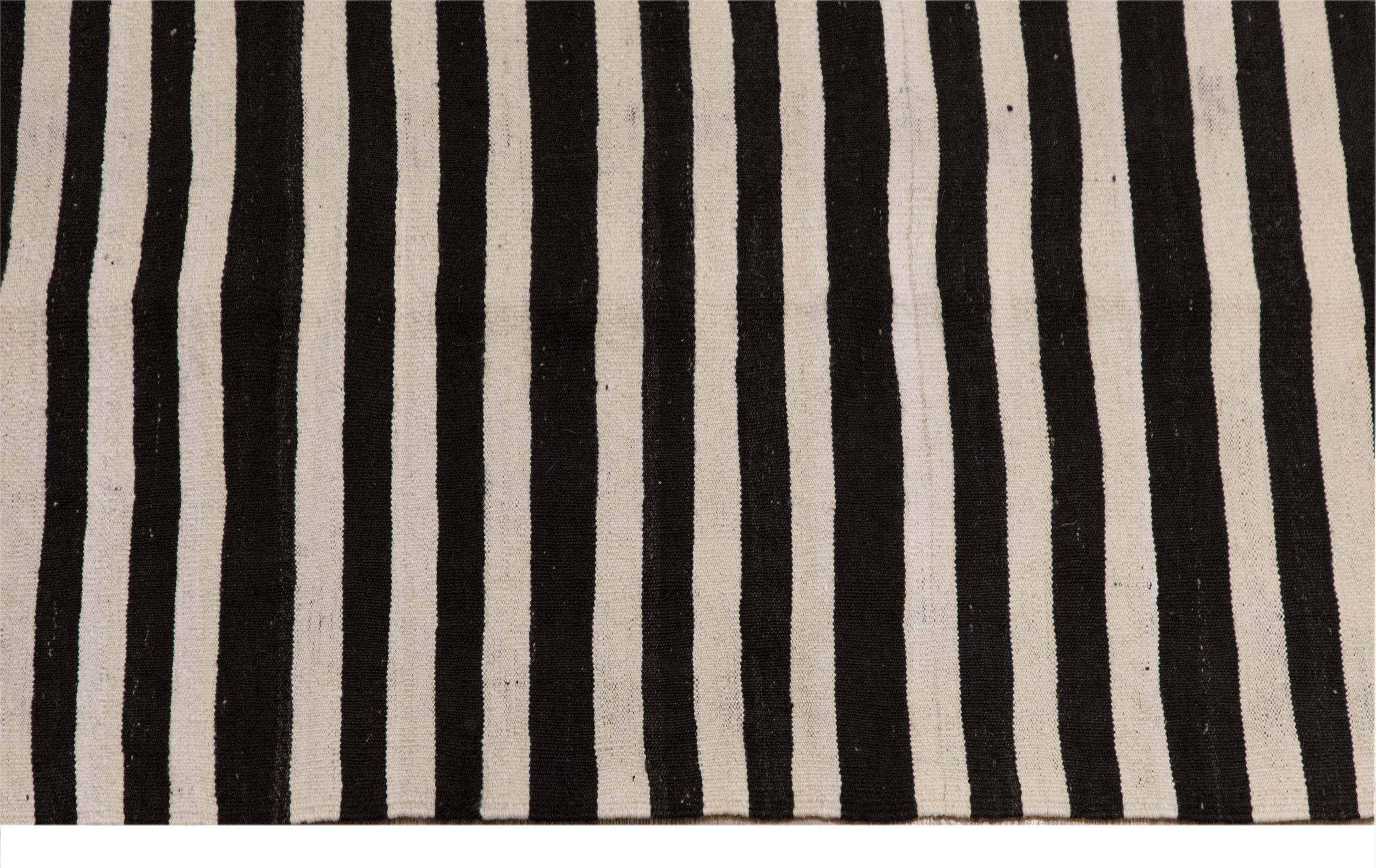 This authentic vintage Turkish Kilim rug is a handwoven piece from the 1960s, crafted with goat hair and naturally dyed using plants. Its minimalist striped design, soft muted tones, and balanced rectangular size make it a great fit for modern, boho, Scandinavian, or traditional interiors. The rug is in excellent condition and ready to use.