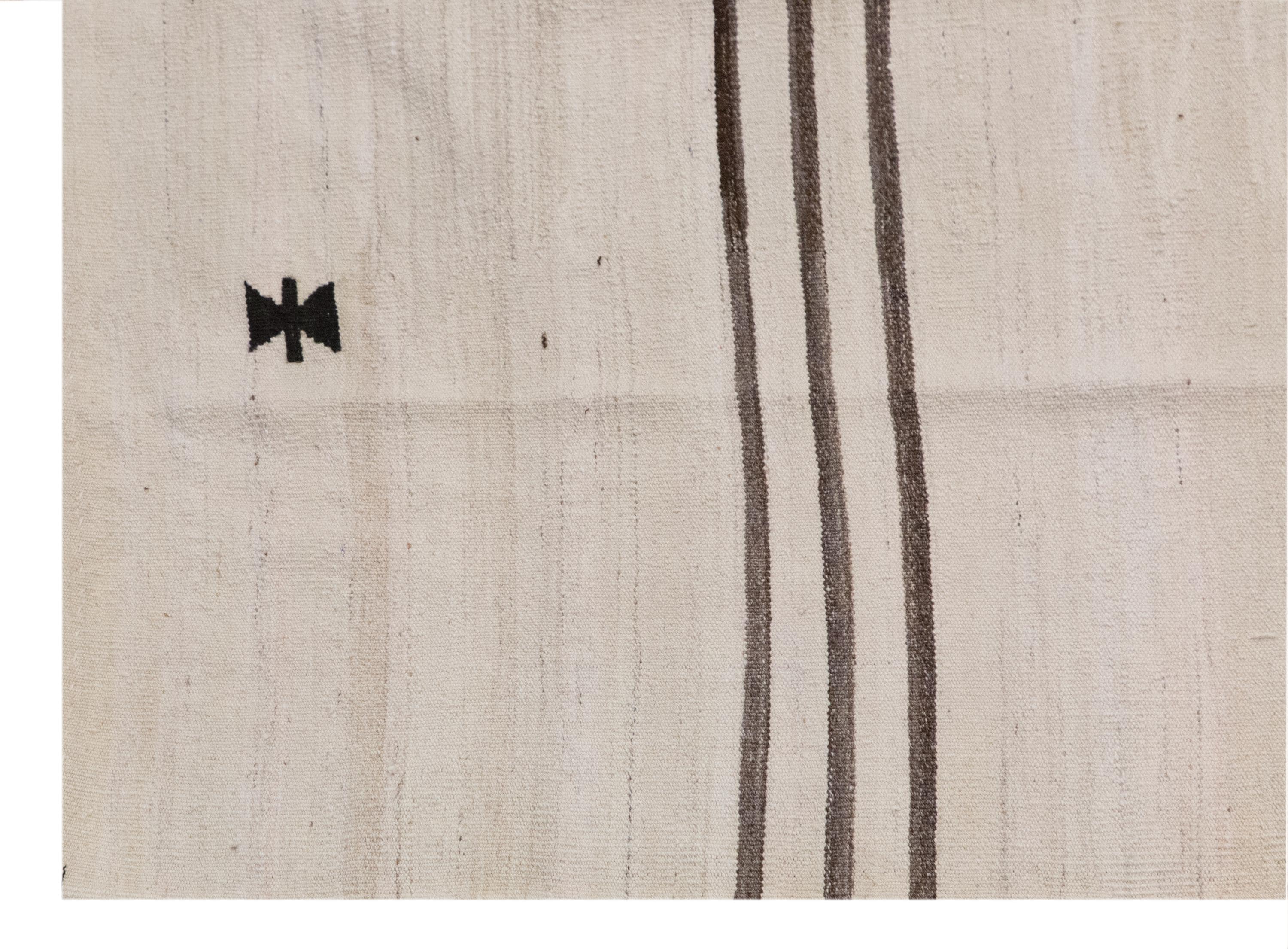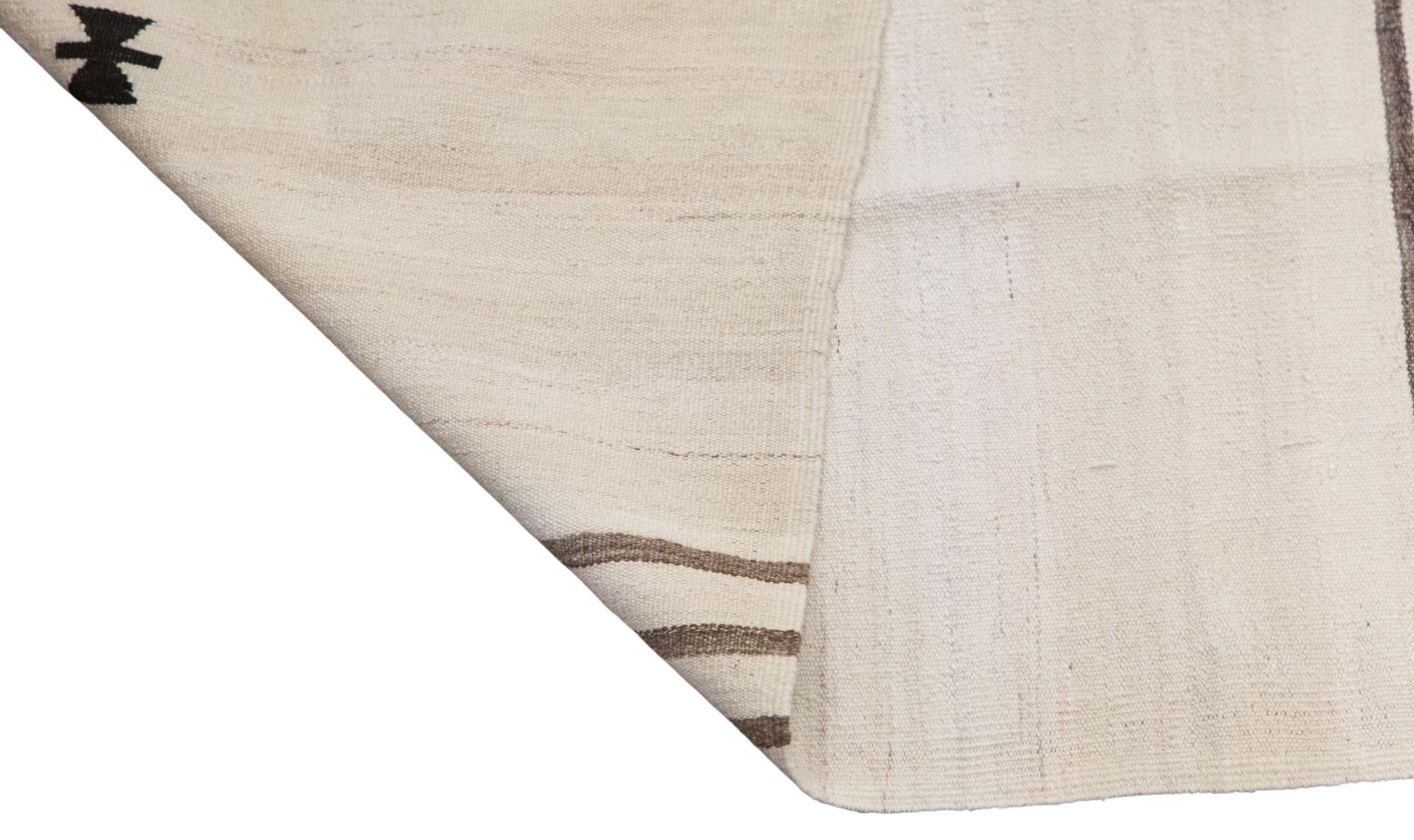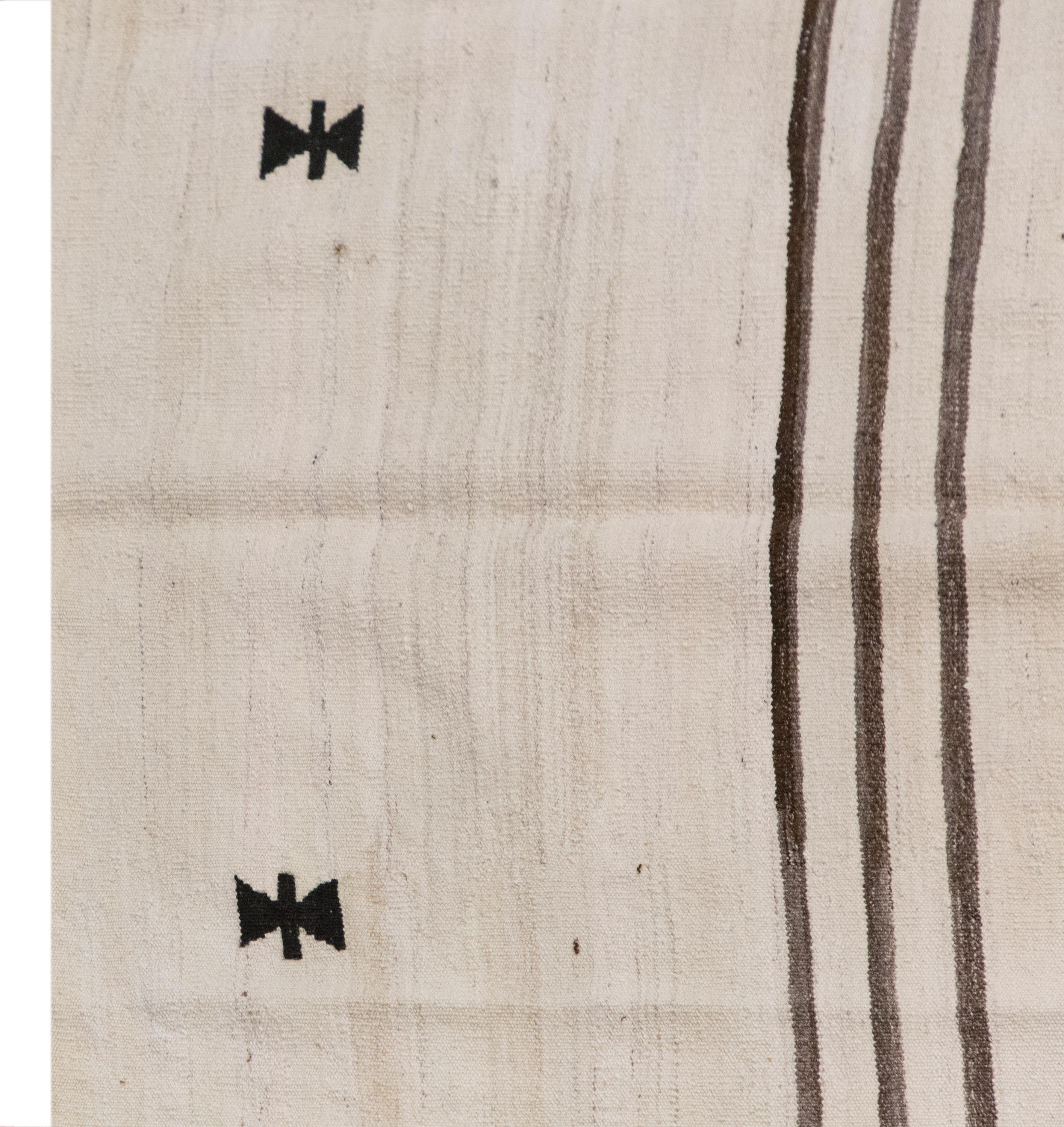 🧿 Minimalist Embroidery Light Kilim Rug – One of a Kind
