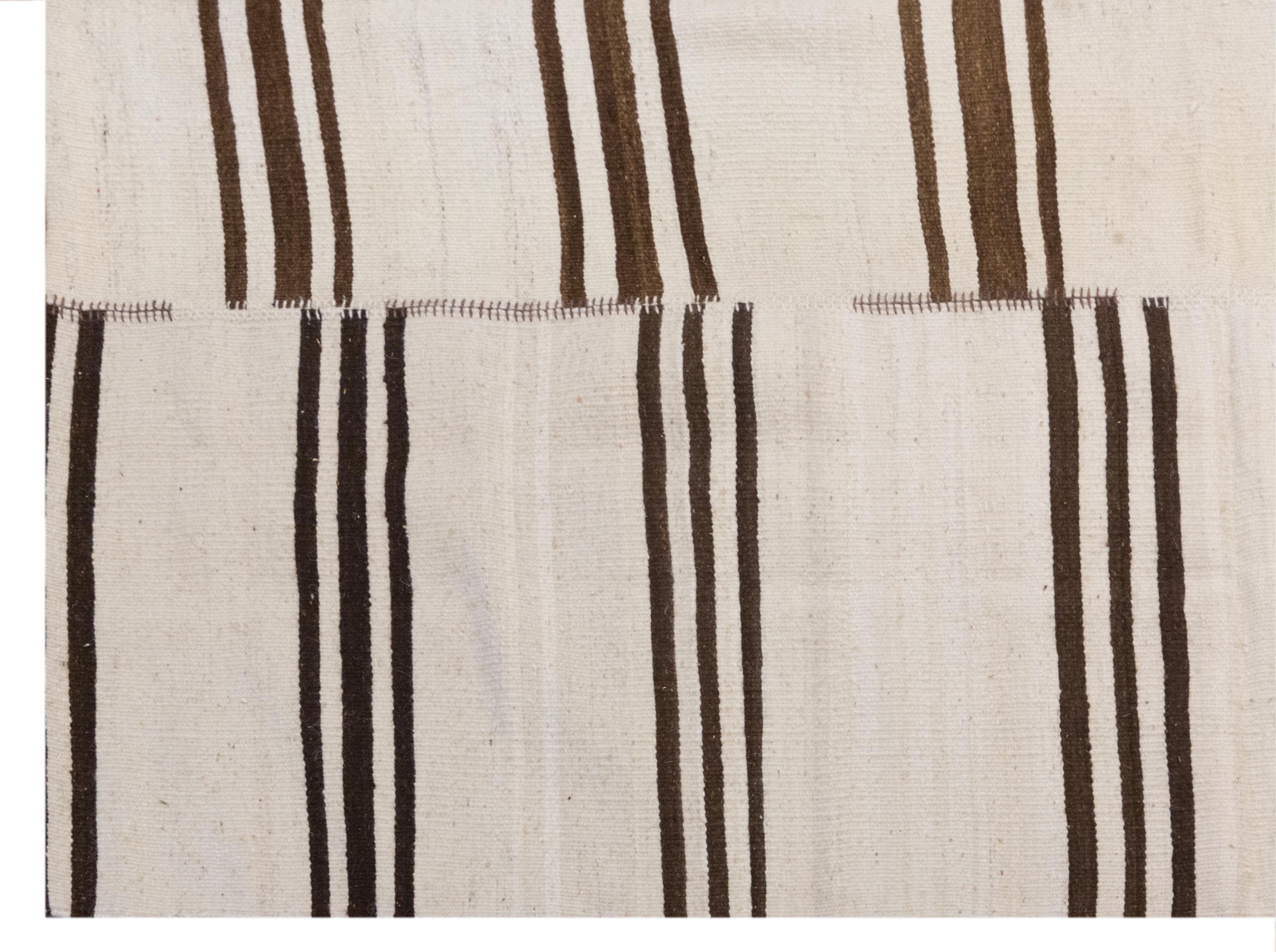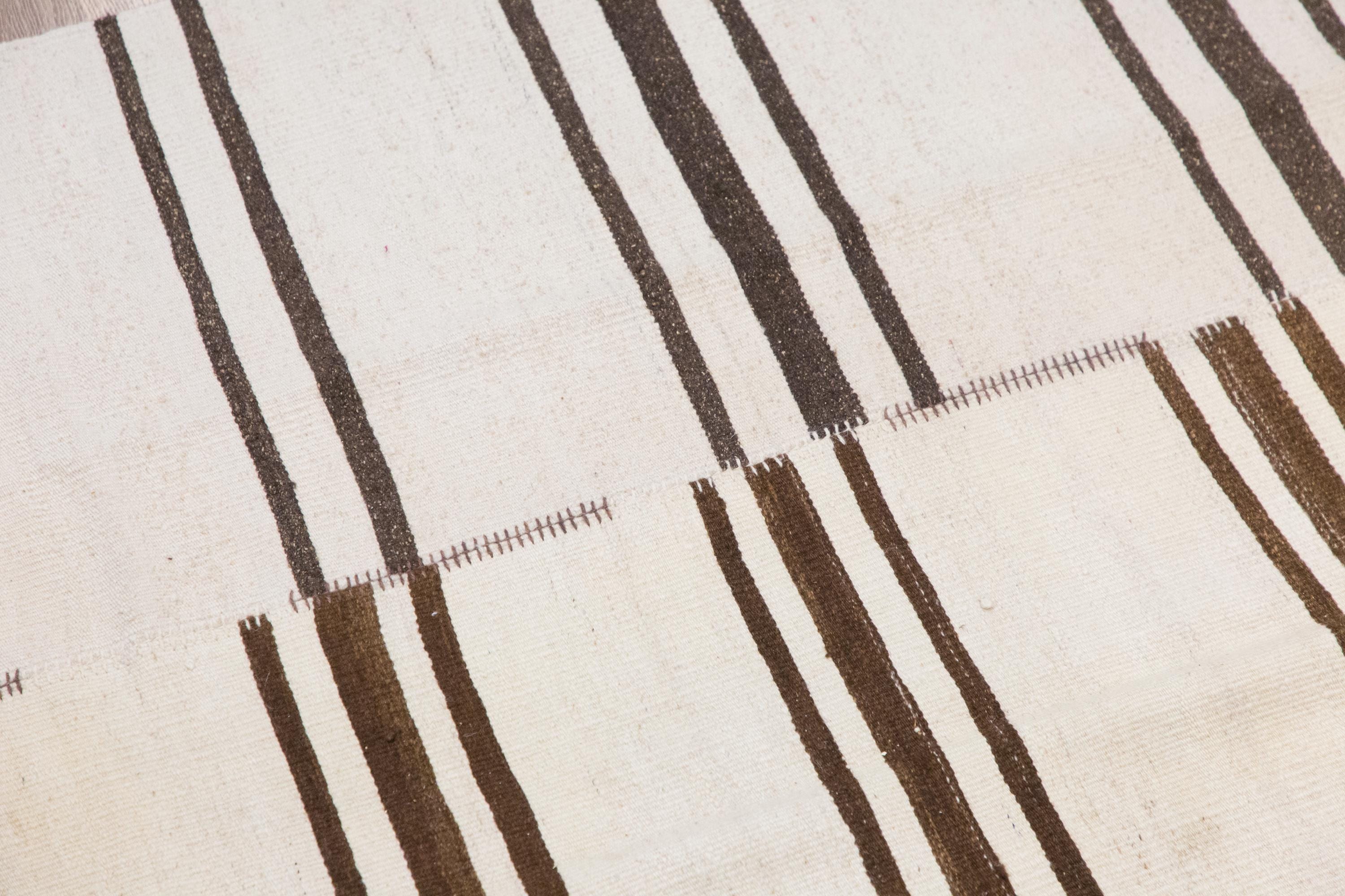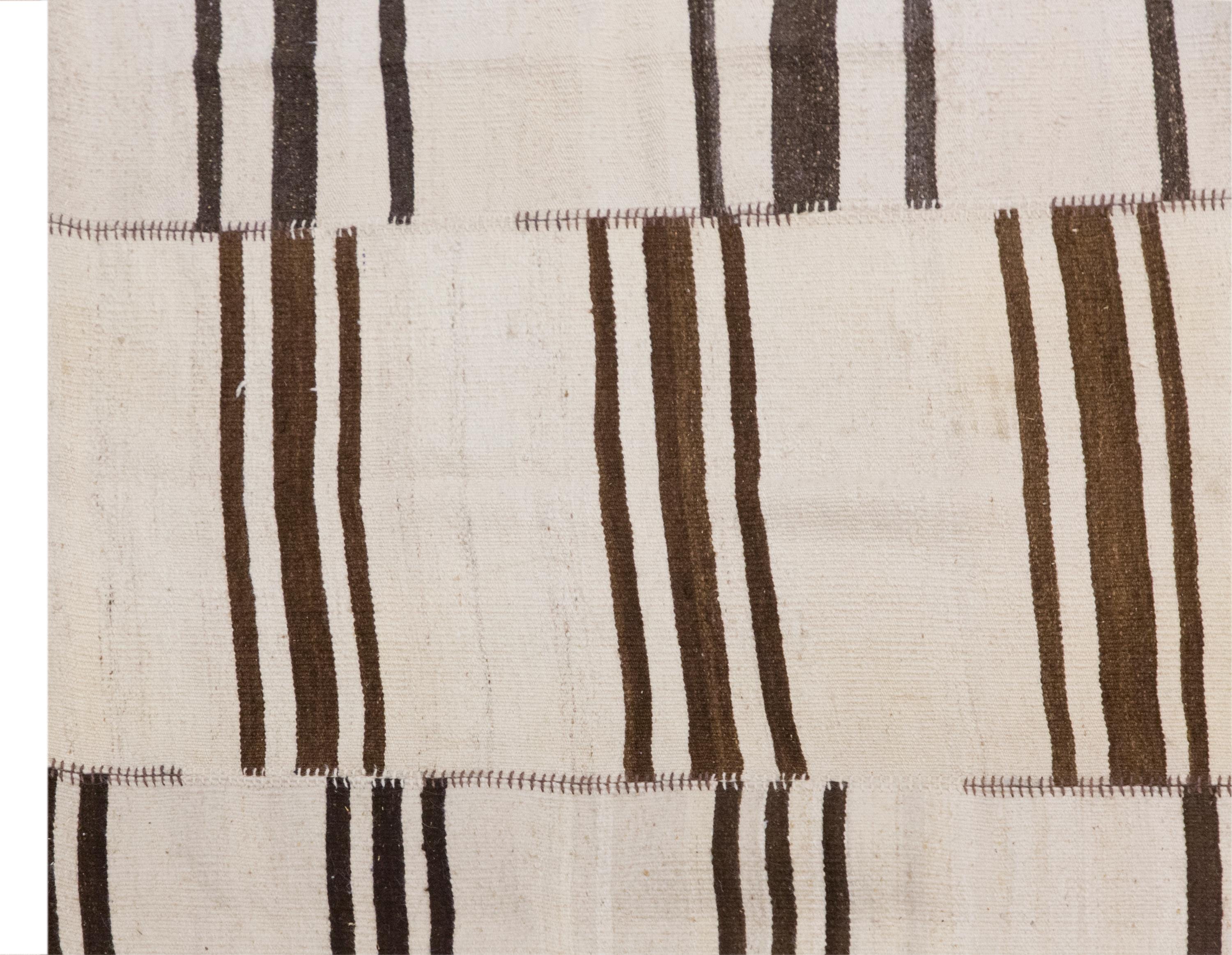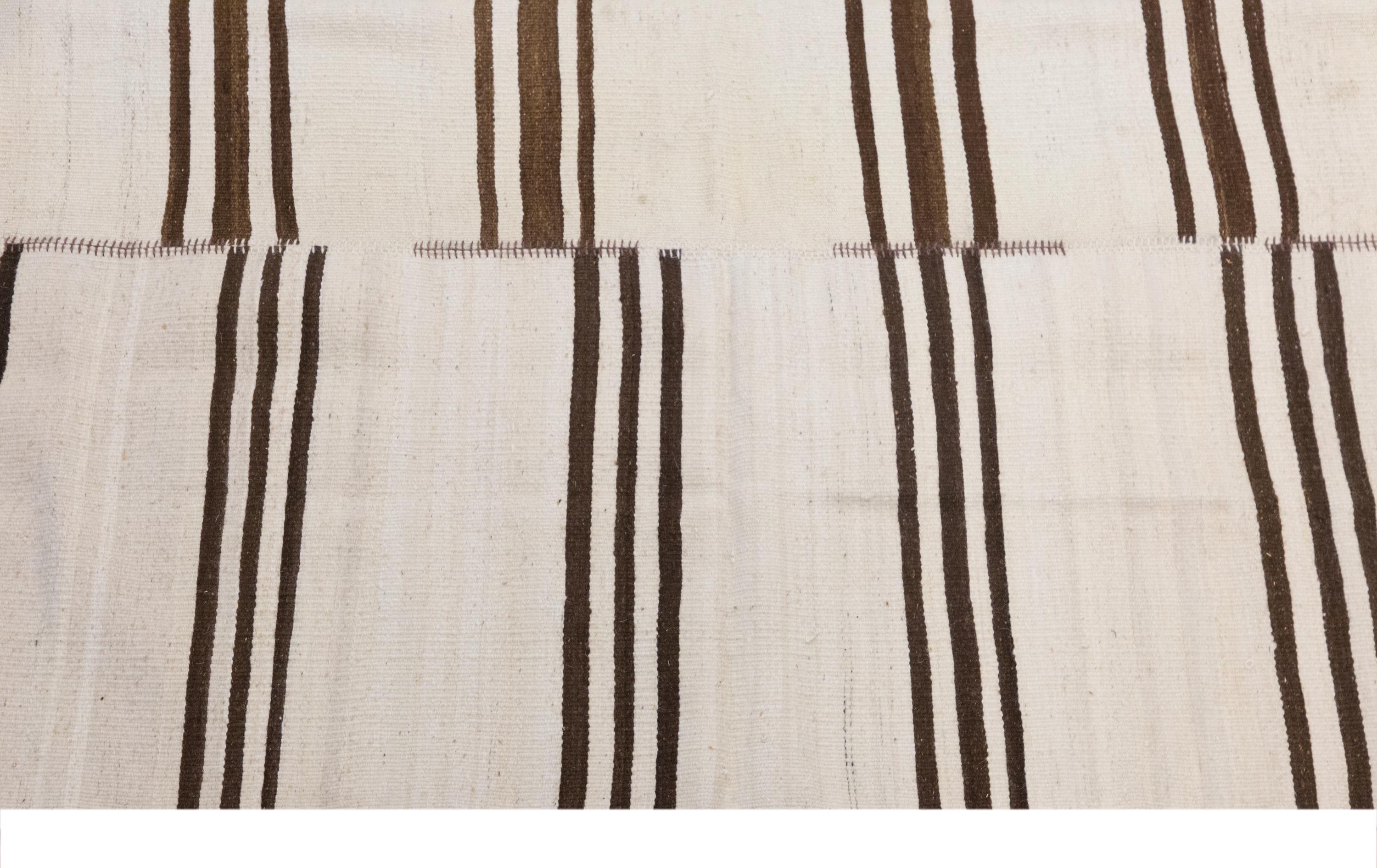 🧿 Minimalist Embroidery Light Kilim Rug – One of a Kind