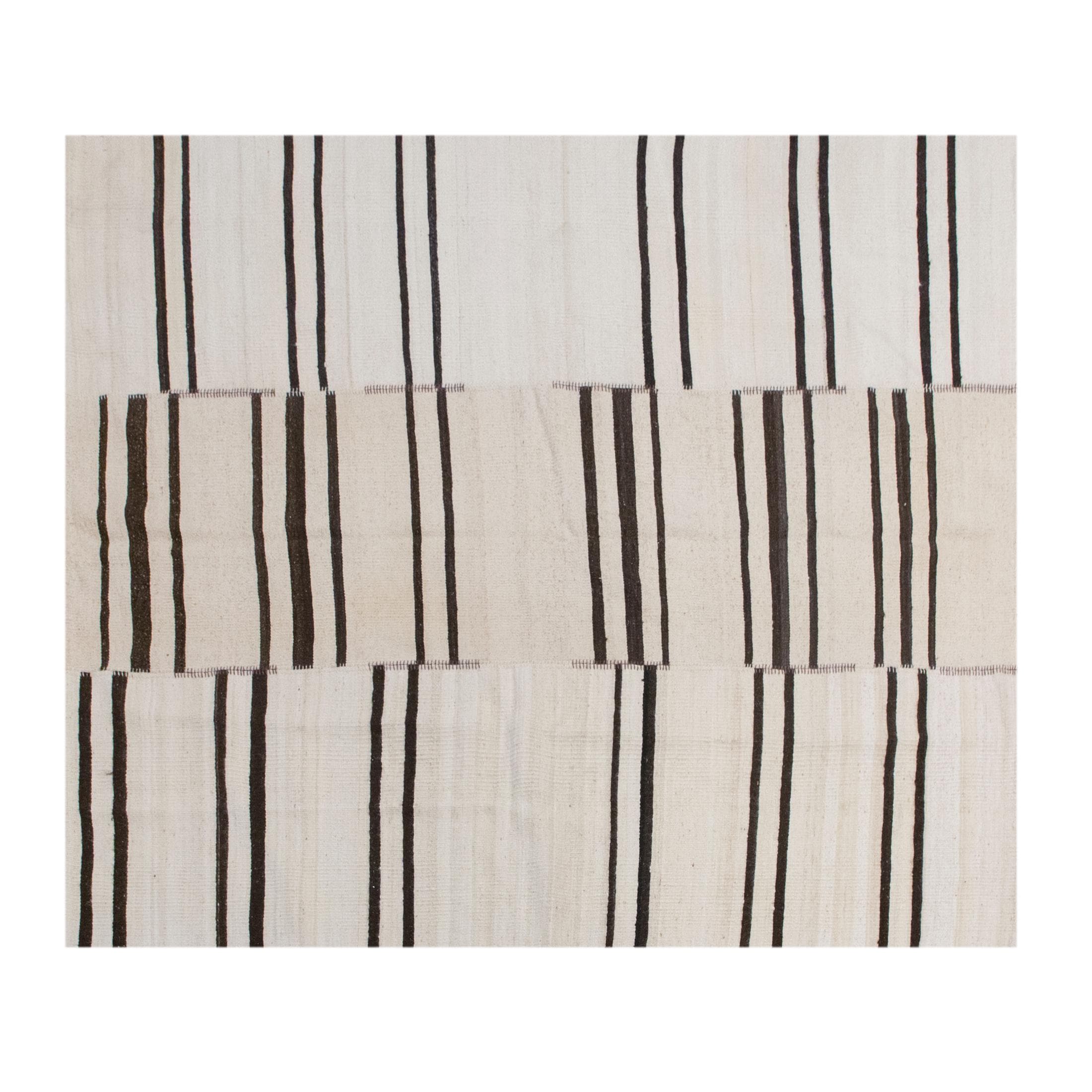 🧿 Minimalist Embroidery Light Kilim Rug – One of a Kind