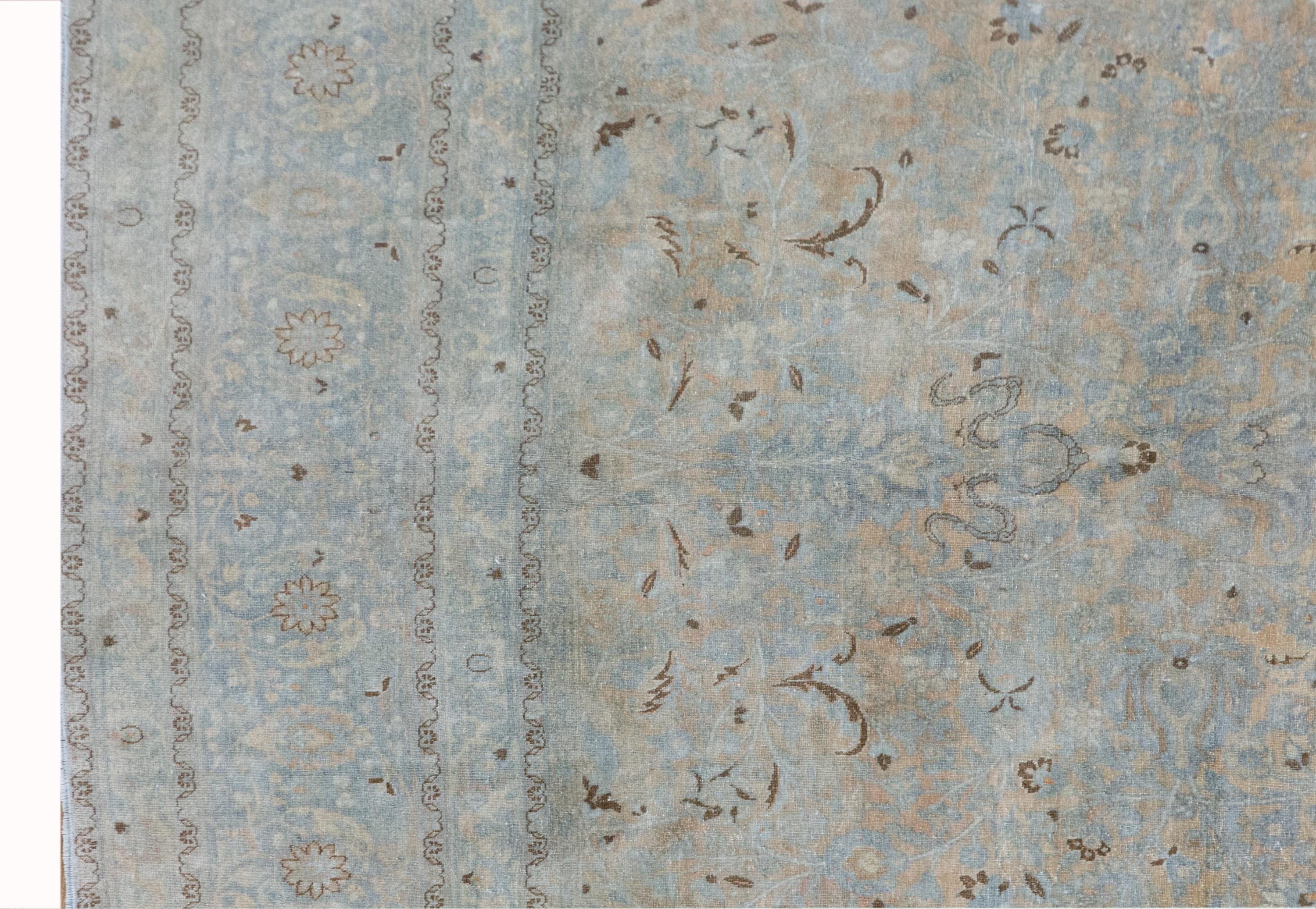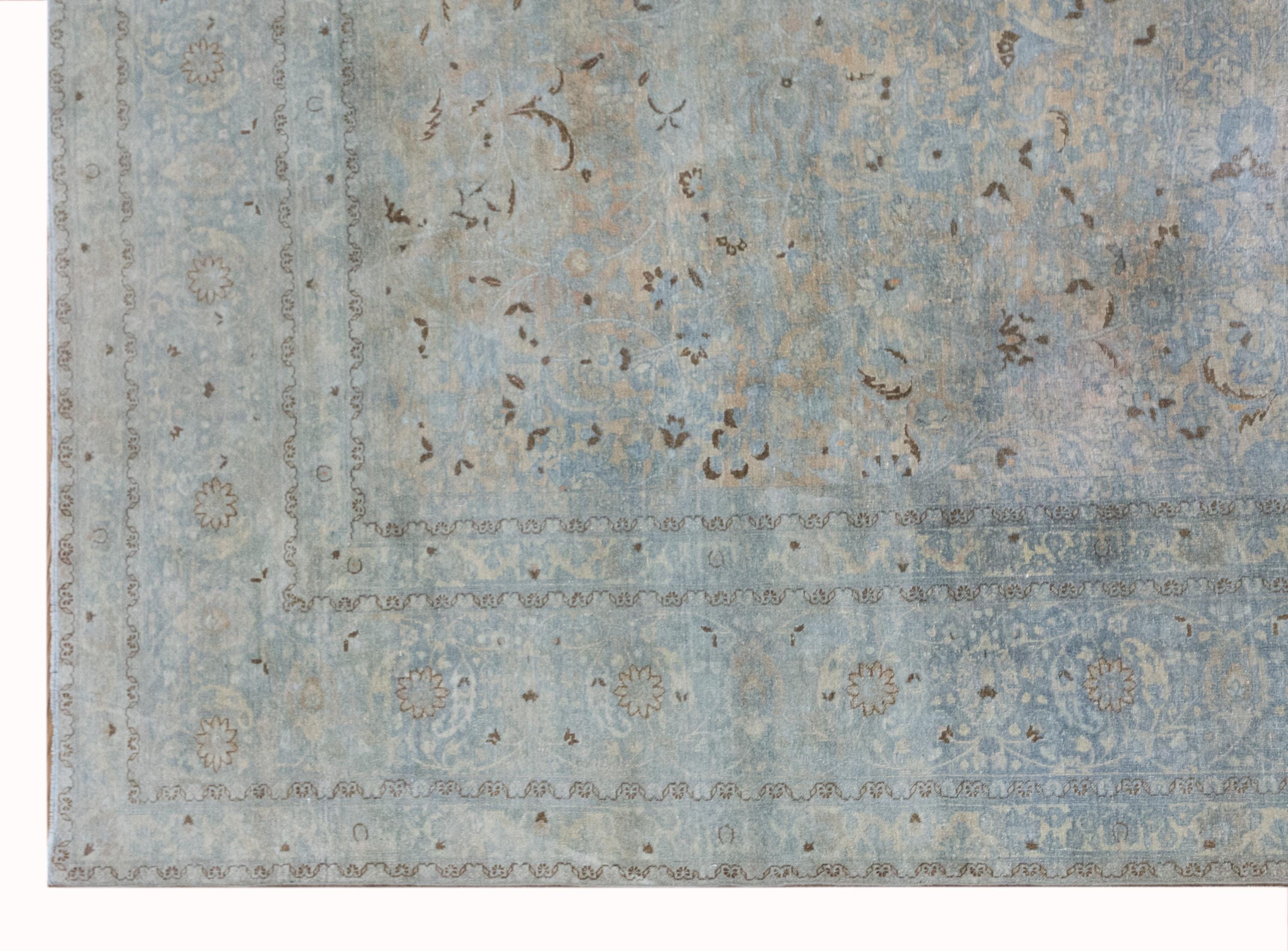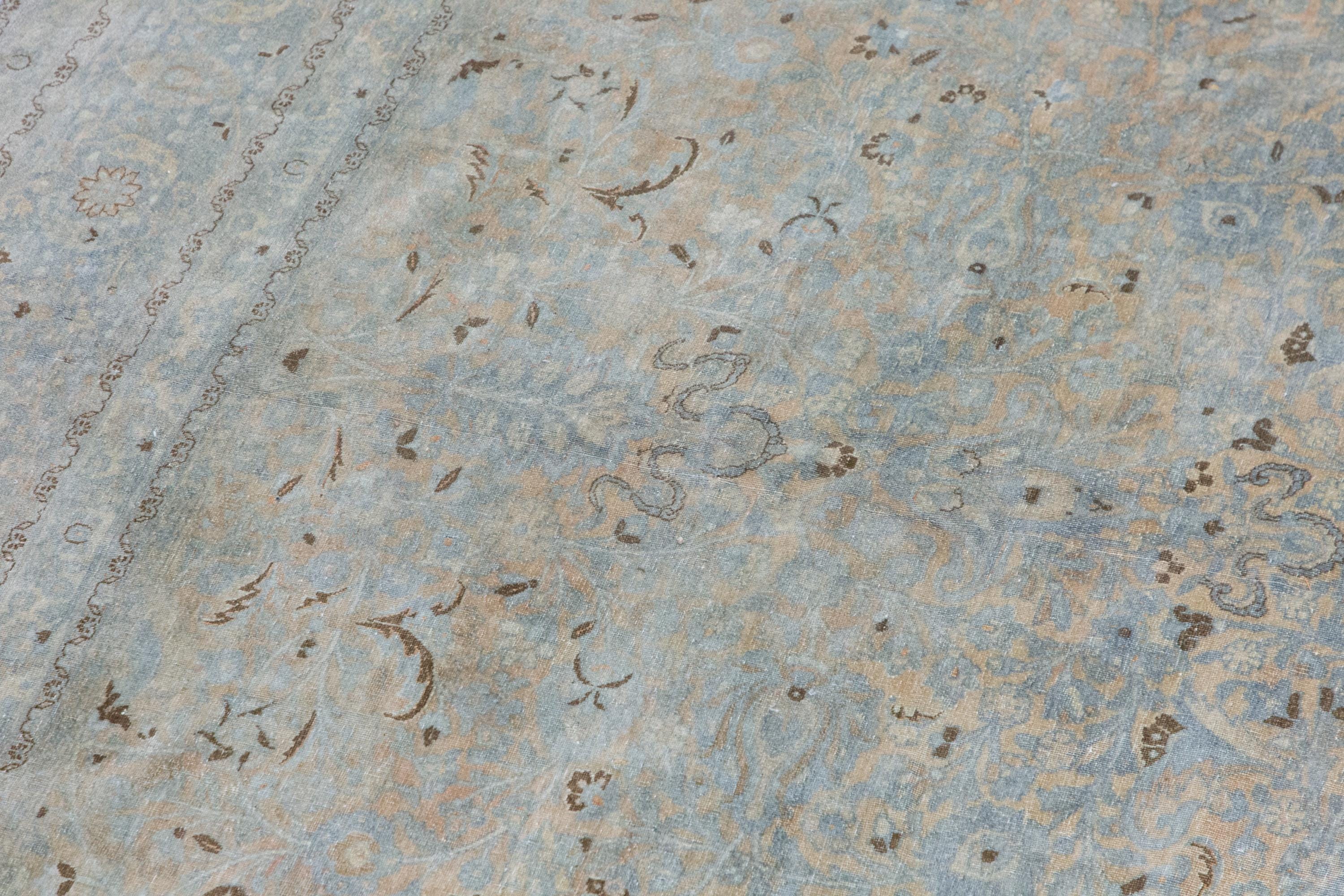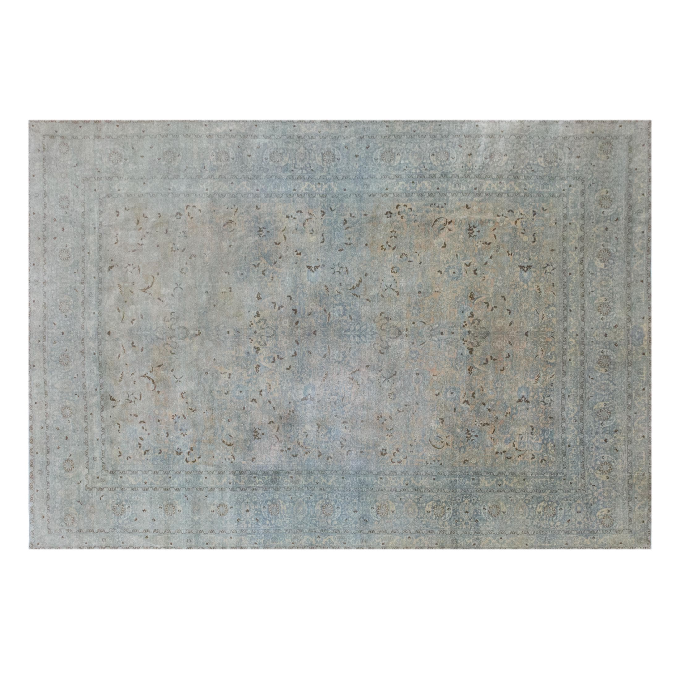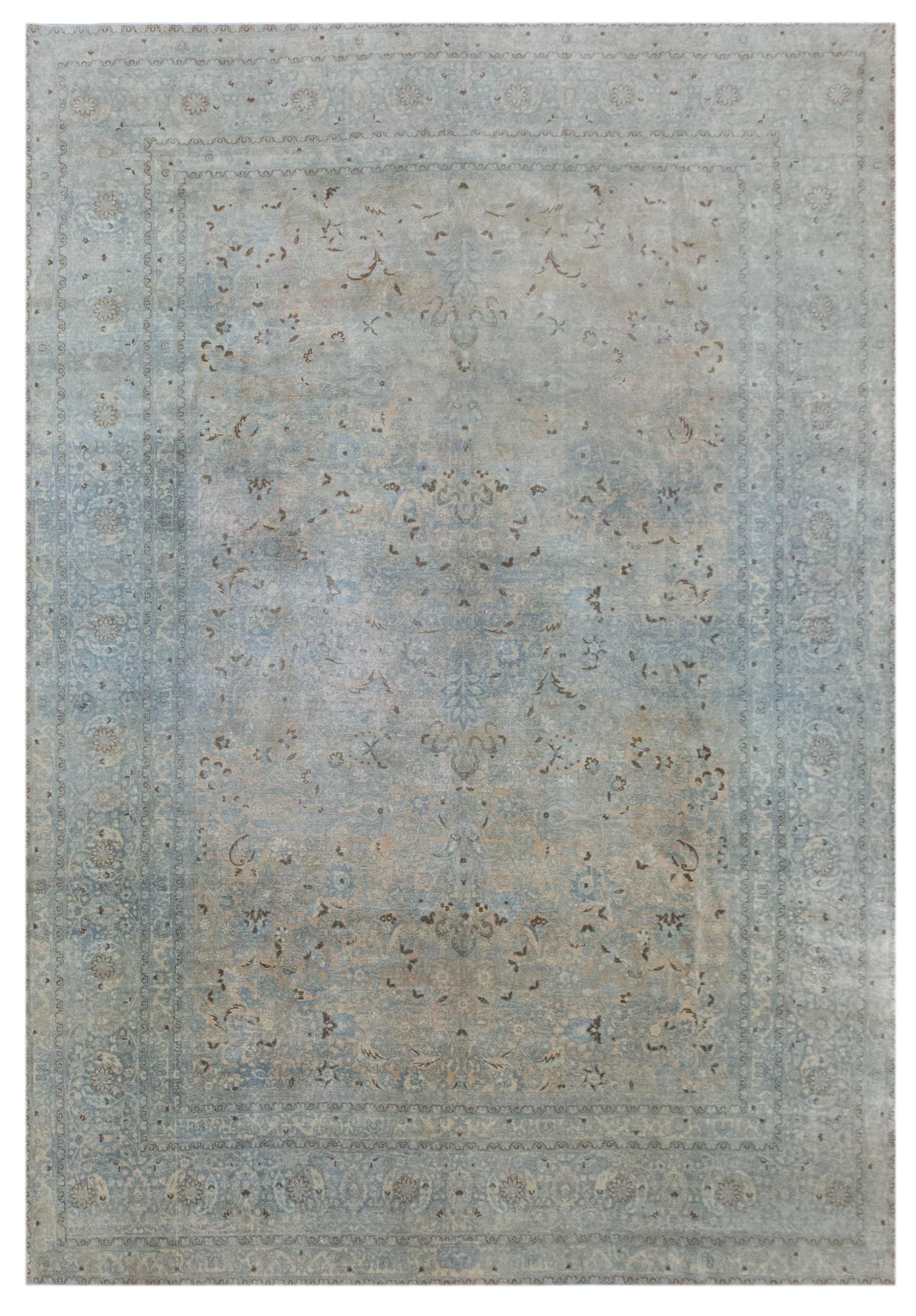 • Elegant faded Oushak motifs with soft antique patina