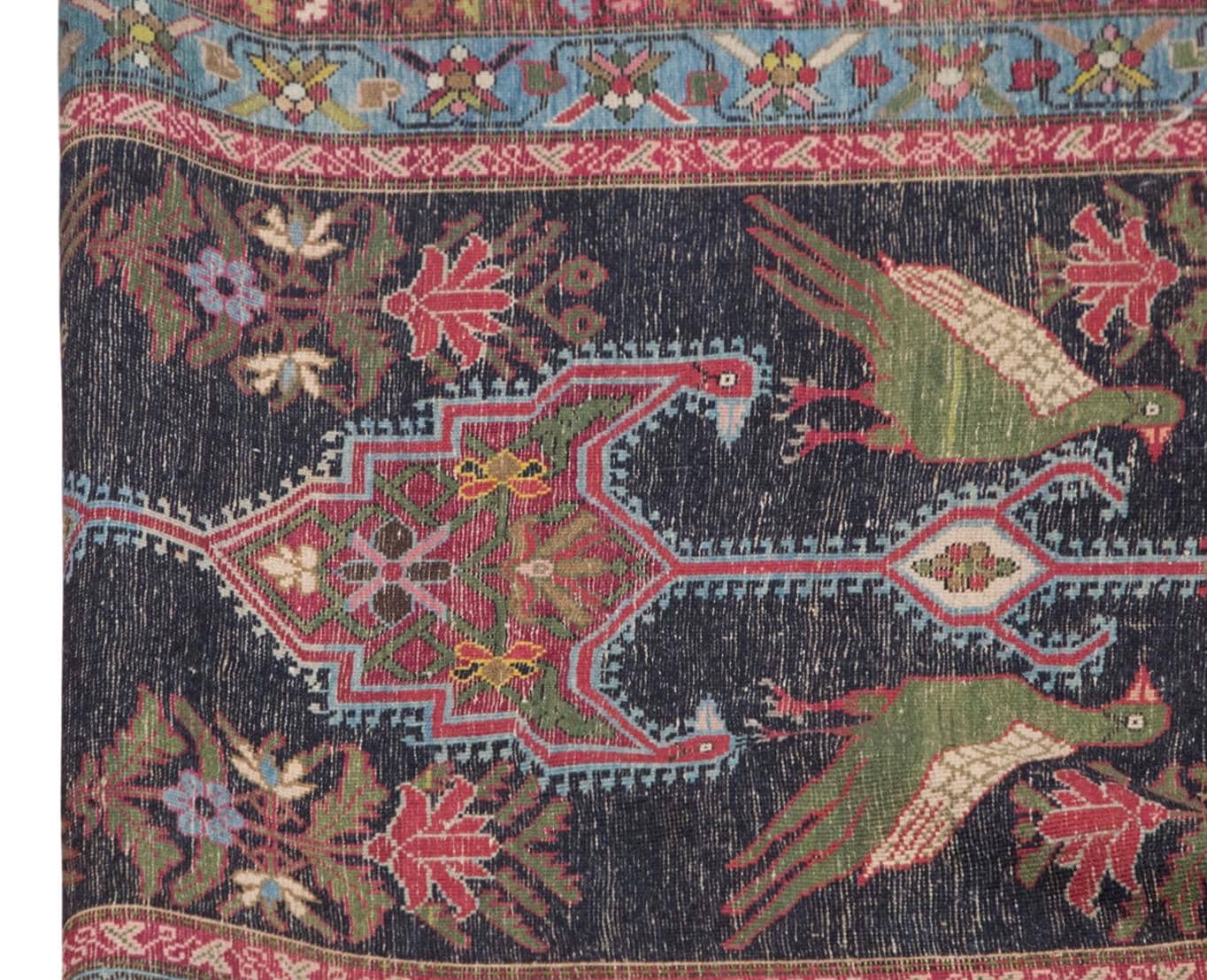The story of its pattern feels like a journey expressed through symbols. The repeating central medallions create a sense of movement, almost like markers placed along a path, guiding the eye from one end to the other. Around them, the delicate floral elements soften the composition and add a feeling of richness and continuity. The bird-like motifs give the runner a lively and poetic spirit, as if they are carrying quiet messages across the length of the piece. Together, these details create a design that feels both protective and celebratory, blending order, motion, and quiet beauty into a single woven narrative.